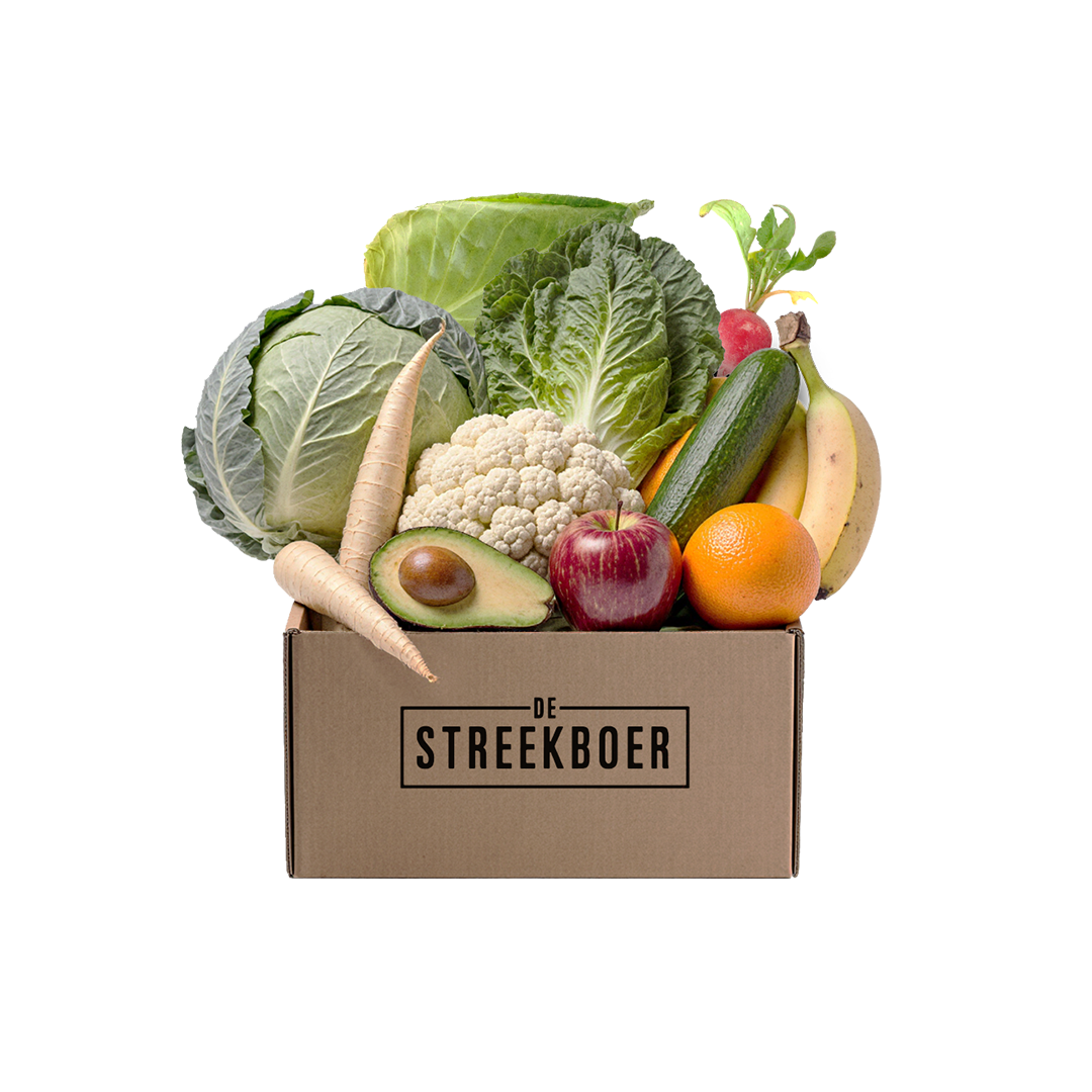 Bestaat jouw huishouden uit meer personen? Kies dan voor een Biologische Streekboerbox aangevuld met een Biologische Fruittas. De inhoud overlapt deels met deze box, de porties zijn groter.