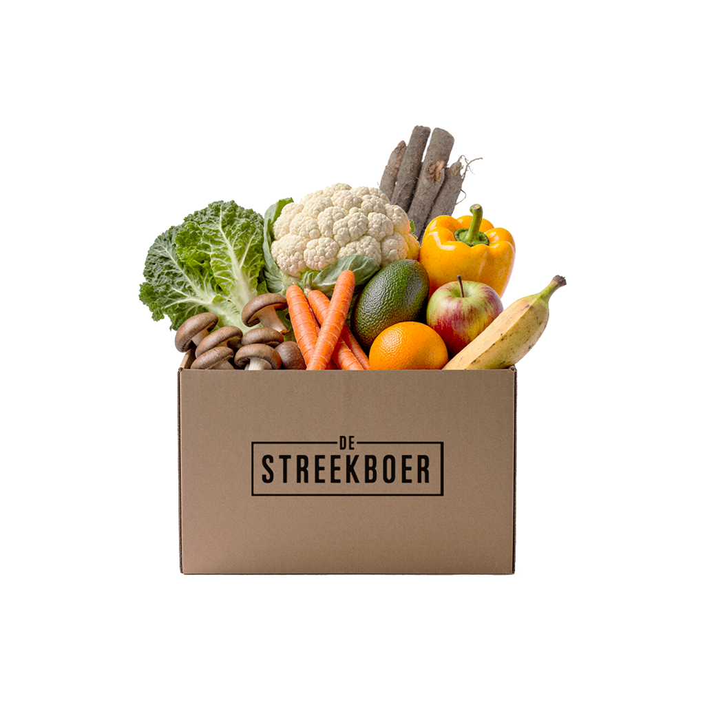 Bestaat jouw huishouden uit meer personen? Kies dan voor een Biologische Streekboerbox aangevuld met een Biologische Fruittas. De inhoud overlapt deels met deze box, de porties zijn groter.
