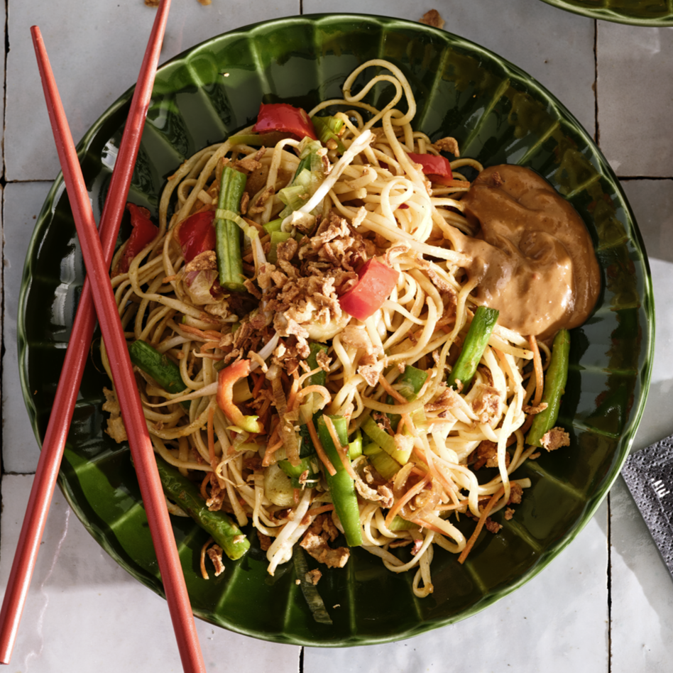 Ontdek de unieke Fryske twist in onze bami, gemaakt met seizoensgroenten en huisgemaakte pindadip. Zowel vega met roergebakken tofu in ketjapsaus als met kip ketjap te verkrijgen.